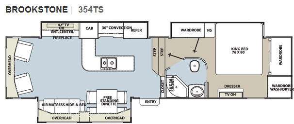 Triple Side Brookstone Fifth Wheel by Coachmen w/Rear Living Area Including 2 Rocker Recliners w/Overhead Storage, Air Mattress Hide-A-Bed & Free Standing Dinette Slide, Ent. Center w/42" TV/L-Counter w/Dbl. Sink/3 Burner Range & Refrig. Slide, Step Up to Bed & Side Aisle Bath w/Corner Shower, Toilet & Sink, Dbl. Bath Entry, Ward./Nightstand/King Bed Slide, Ward. w/Sliding Doors, Dresser, Ward./Wash/Dryer Prep and More! Avail. Options May Include: Fireplace.