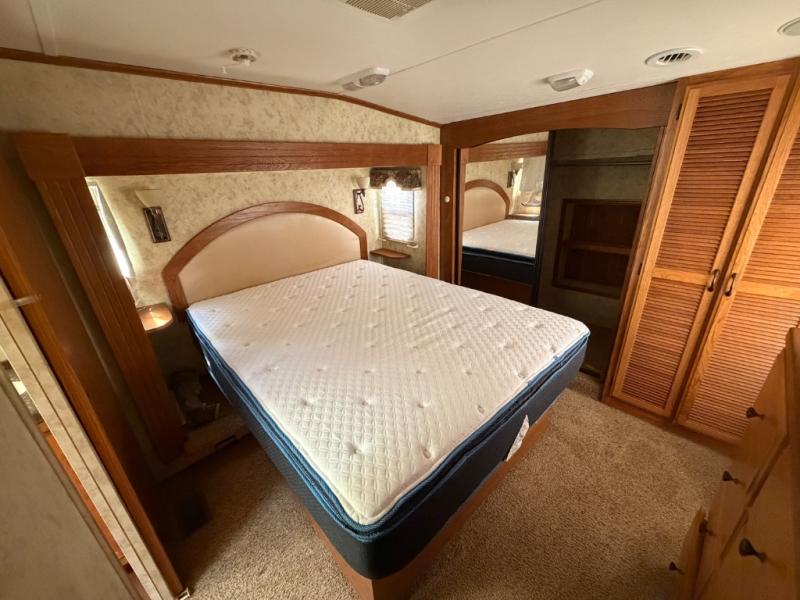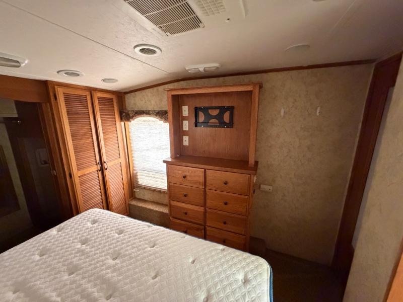 Quad Slide Brookstone FW w/Rear Living Area Including 2 Rocker Recliners, Desk w/42" HD LCD TV Above Slide, L-Shaped Counter w/Dbl. Sink & Overhead Storage, Slideout 3 Burner Range/Refrigerator, Coat Closet, Base Cabinet w/Overhead, Step Up To Side Aisle Bath w/Corner Shower, Toilet & Sink, King Bed Slide w/Nightstands, Ward. w/Sliding Doors, Dresser, Wash/Dryer Prep and Much More! Avail. Options May Include: Fireplace.
