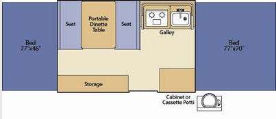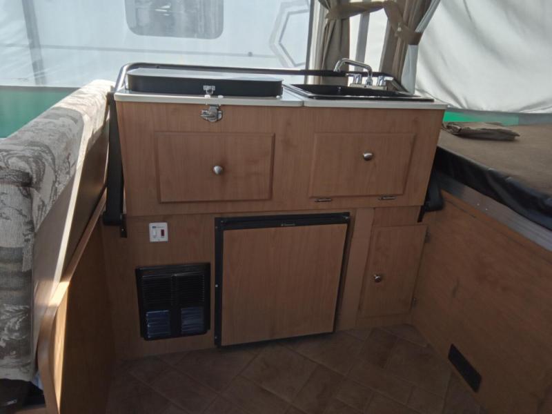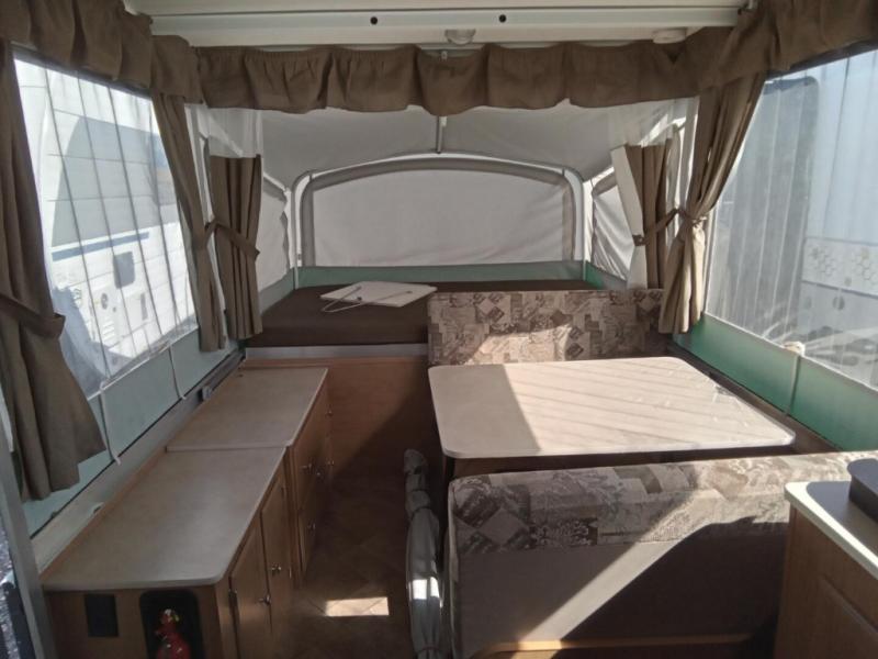 Americana LE Series Folding Camper, Rear & Front Tent End Beds, Booth Dinette w/Portable Table, 2 Burner Range, Single Galley Sink, Storage, Cabinet or Cassette Potti and More.