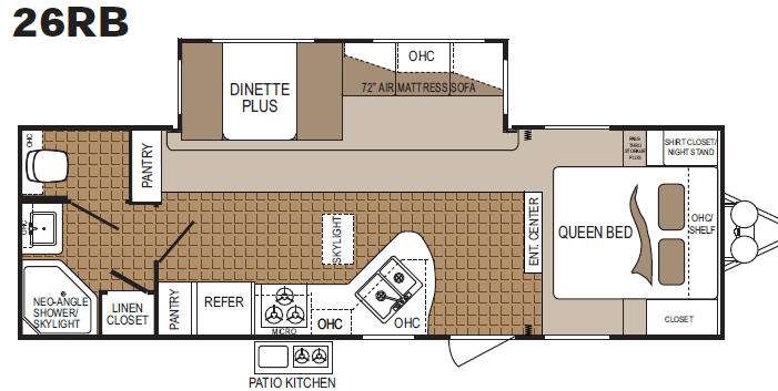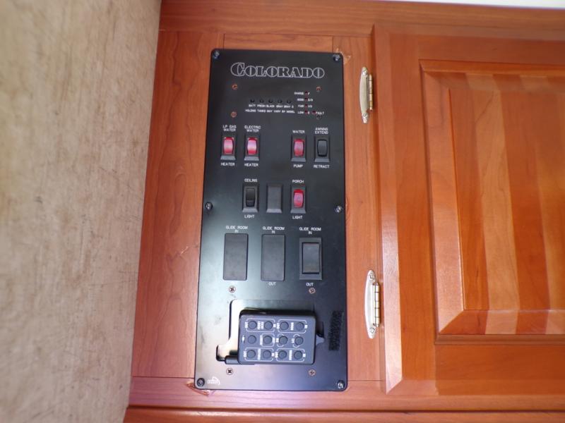 Colorado Travel Trailer w/Rear Full Bath Including Private Toilet Area, Sink, Neo-Angle Shower w/Skylight, Linen Closet w/Overhead Cabinets, 2 Pantries, Dinette Plus & 72" Air Mattress Sofa Slide w/Overhead Storage, Refrigerator, 3 Burner Range, Dbl. Kitchen Sink, Skylight, Ent. Center, Front Queen Bed w/Shirt Closet/Nightstand, 2nd Closet, Overhead Shelf Above Bed, Pass-Thru Storage, Patio Kitchen and Much More!