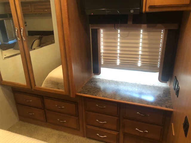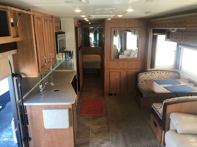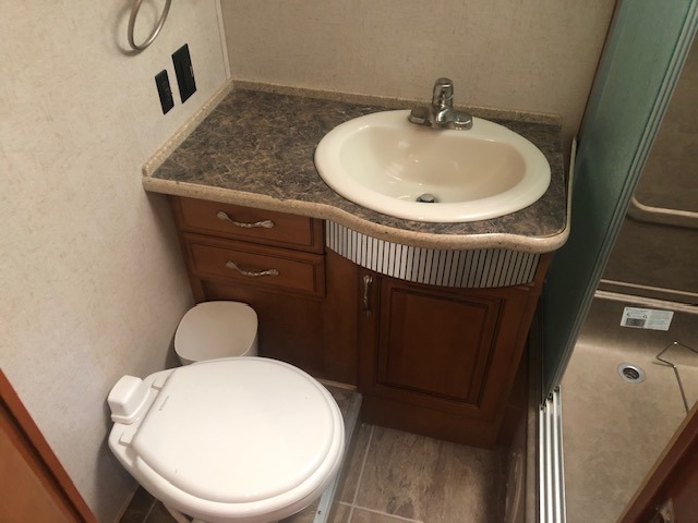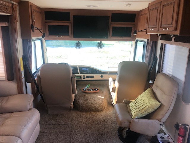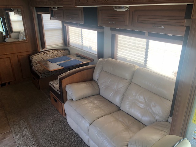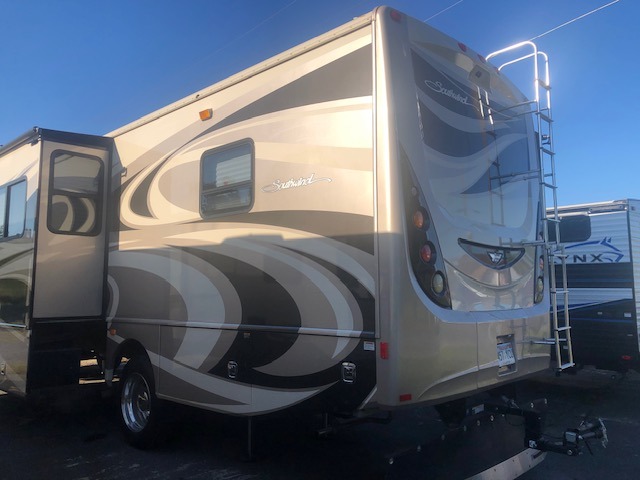 Clean Unit!Double Slide Southwind Class A Motor Home, Rear Queen Bed w/Nightstands Ward./Utility/Refrig./3 Burner Range w/Micro./Dbl. Kit. Sink Wall Slideout, Booth Dinette & Sofa Sleeper Slide, 32" TV, Side Aisle Bath w/Corner Shower, Lavatory, Toilet, Ward/TV in Bedroom, 17' Awning & Much More! Available Options May Include: King Bed, Washer/Dryer, Free Standing Dinette w/Credenza, Ultra-Leather Furniture Package.