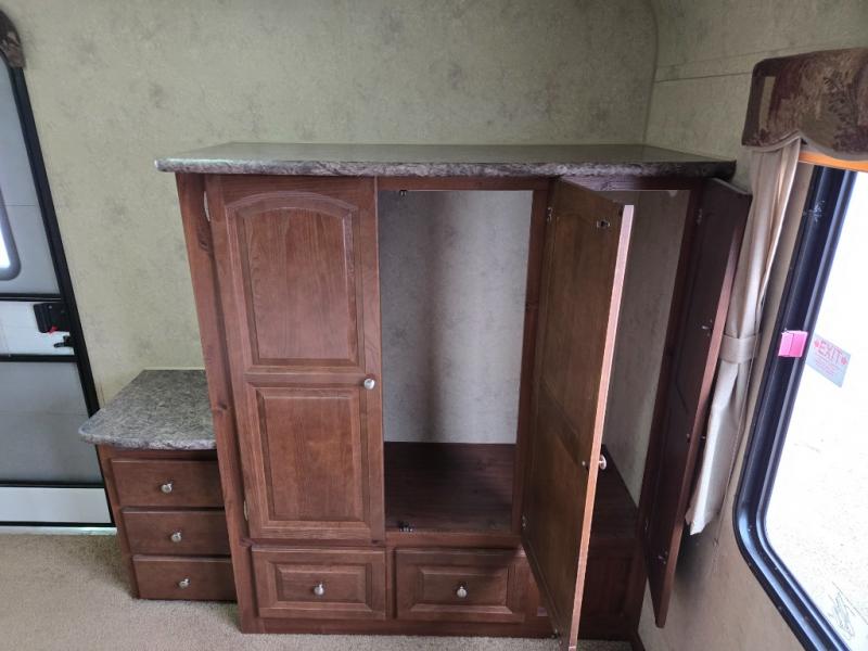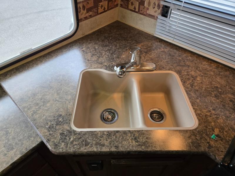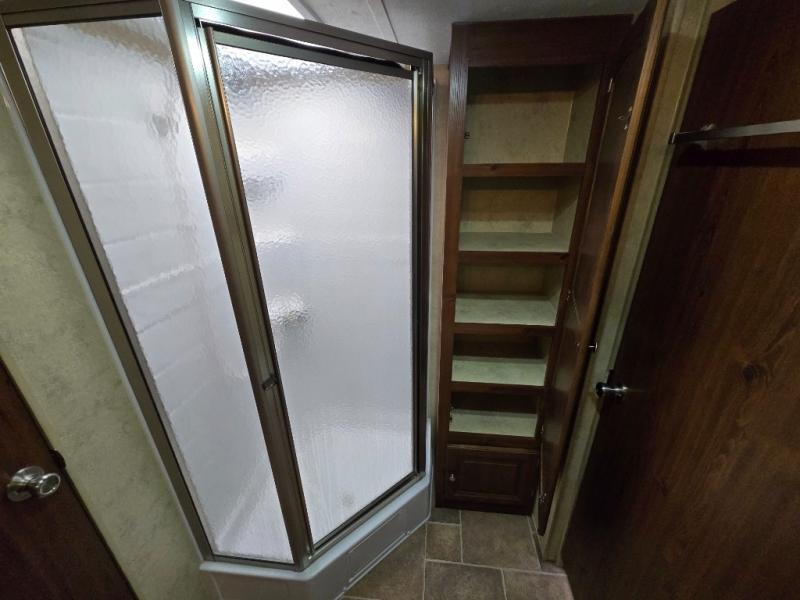 Double Slide Flagstaff Classic Super Lite Travel Trailer w/Rear Queen Bed Slide, Nightstand, Walk-In Closet w/Shelves, Vanity, Walk-Thru Bath w/Angle Shower, Lav., Med. Cabinet, Linen Cabinet, Sofa/Booth Dinette Slide, Front Kitchen w/Pantry, Shelves, Double Kitchen Sink, 3 Burner Range, Microwave, Refrigerator, Chair, Corner TV Shelf/Wardrobe, 20' Awning, Exterior Storage and More. Available Options May Include: TV in Bedroom, Recliner.