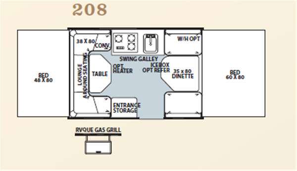 LIKE NEWFlagstaff MAC/LTD Series Folding Camper w/Rear Full Tent End Bed, 38 x 80 Lounge Around Seating, Table, Entrance Storage, Front Booth Dinette, Swing Galley w/3 Burner Range & Sink, Ice Box, Front Queen Tent End Bed, RVQue Gas Grill and Much More. Available Options May Include: Heater, Refrigerator.