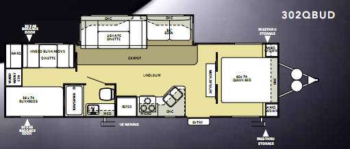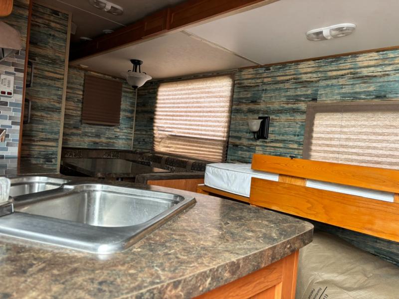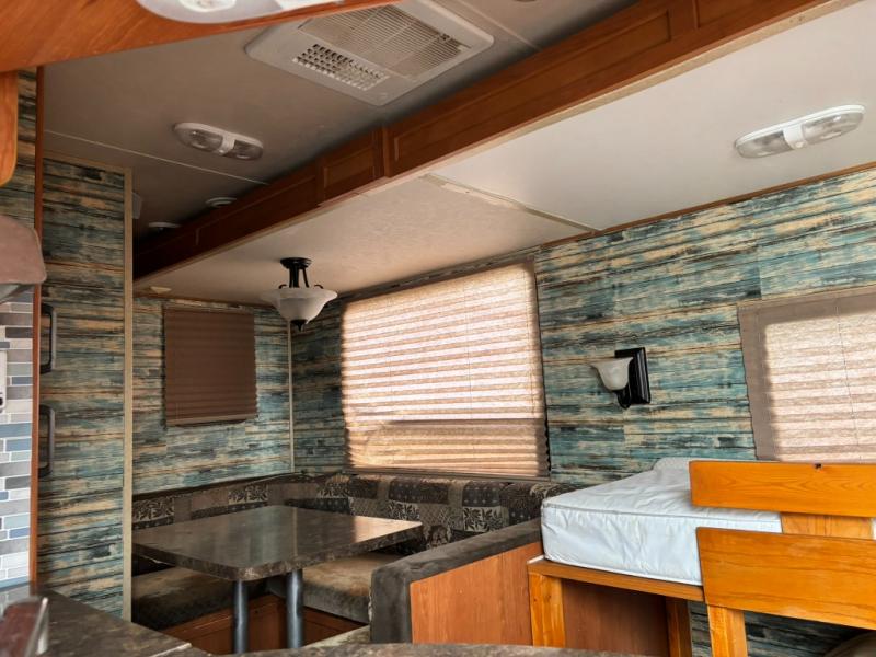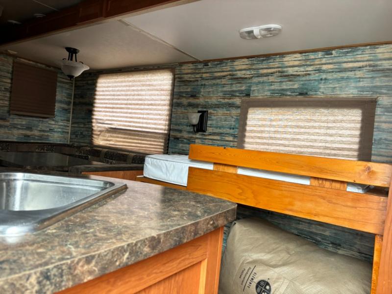 Single Slide Salem Hemisphere TT, Rear Bunkhouse w/Bunk Beds, Hinged Bed Above Dinette, Ward., Ent. Ctr. Ward., Tub/Shower, Toilet, Lav., Med. Cab., U-Shaped Dinette & Sofa Slide Out w/Overhead Cab., 3 Burner Range, Micro., Dbl. Kit. Sink, Overhead Cab., Micro., 26" Flatscreen TV, Front Queen Bed w/Dbl. Ward. w/Drawers, Overhead Cab., Pass Thru Storage, 18' Awning & Much More