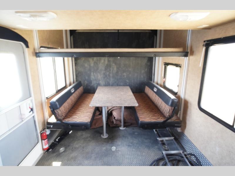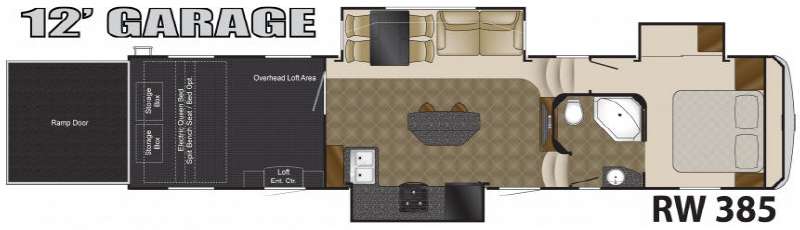 Triple Slide Road Warrior Fifth Wheel Toy Hauler by Heartland w/Rear Ramp Door to 12' Cargo Garage w/Storage Boxes, Overhead Loft w/Ent. Center, Side Door in Cargo, Door to Living Area, Dbl. Kitchen Sink, 3 Burner Range & Refrig. Slide, Dinette & Sofa Slide, Island Bar w/Stools, LCD TV, Step Up to Side Aisle Bath w/Separate Step Up Entry to Queen Bed w/Storage, Slideout Closet & More! Avail. Options May Include: Electric Queen Bed/Split Bench Seat.