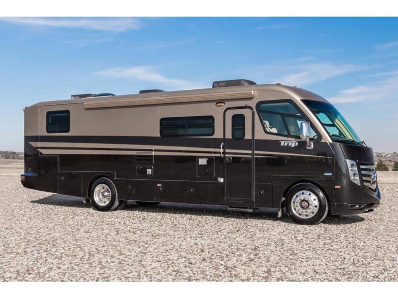 Holiday Rambler Trip Class A Diesel Coach w/Rear Queen Bed w/Shirt Closets & Nightstands Both Sides, Private Toilet Area w/Sink & Overhead Cabinet, Shower, Linen Cabinet, Refrigerator, Range w/Microwave Above, Round Kitchen Sink w/Overhead Storage, 32" LCD TV in Living Area, U-Shaped Booth Dinette & 68" Sofa Slideout w/Overhead Storage Above Both, Overhead Cabinets Above Cab Area & More! Available Options May Include: 19" LCD TV in Bedroom