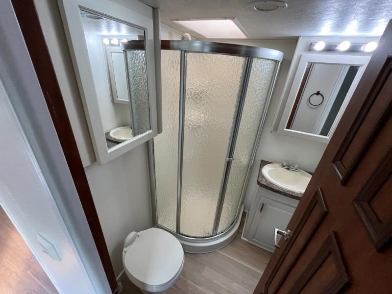 Large Walk-Through or Full Bathroom (varies by build) with corner shower and storage.