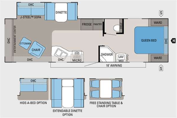 This 318RLS floorplan is one of Jayco’s most popular lightweight designs—easy to tow, roomy inside, and loaded with comfort features. Whether you're planning weekend getaways or extended camping trips, this travel trailer provides a bright, comfortable living space with a well-thought-out layout.