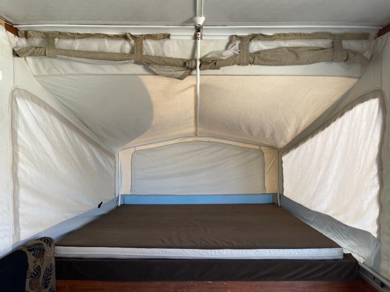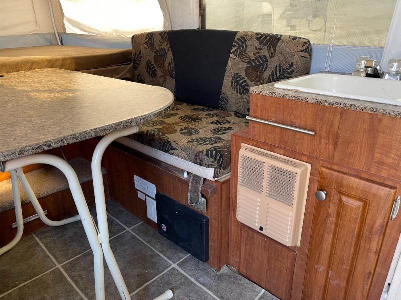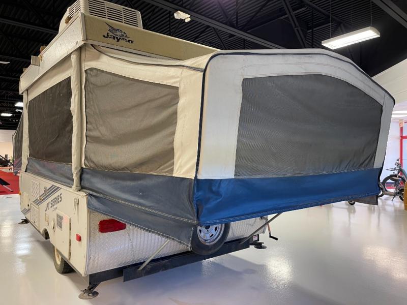 Queen Bed, Full Bed, Booth Dinette, A/C, FurnaceJayco Jay Series Pop-Up Camper, Double & King Tent End Beds, Booth Dinette, Porta-Potti/Storage, Carryout Stove, Single Kitchen Sink, 2 Burner Range, Refrig., Storage Cabinet, U-Dinette, Water Heater, Outside Shower & More. Available Options May Include: Furnace, Dinette w/Extra Table.