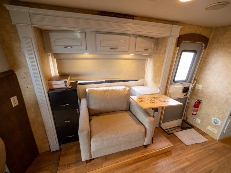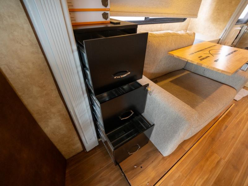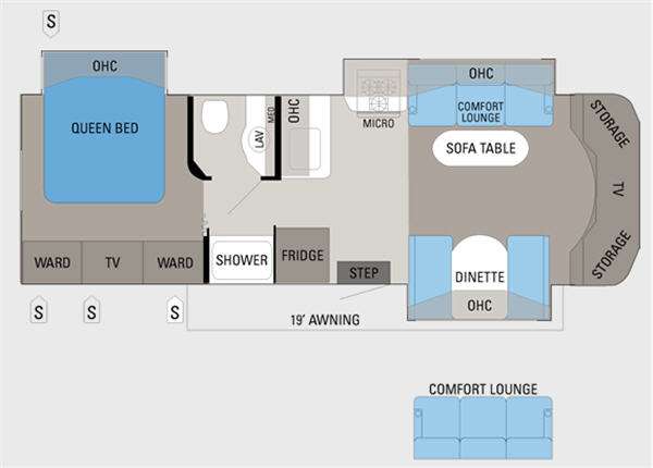 Triple Slide Melbourne Class C Motorhome by Jayco, Rear Queen Bed Slideout w/Overhead Cabinet, Wardrobes, TV, Shower, Private Toilet Area w/Lav. & Med. Cabinet, Refrigerator, Kitchen Sink, 3 Burner Range/Microwave/Comfort Lounger Slideout, Sofa Table, Storage w/TV Above Cab Area, Booth Dinette Slideout, 19' Awning and Much More. Available Options May Include: Comfort Lounge IPO Booth Dinette.
