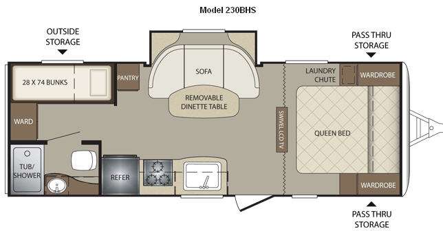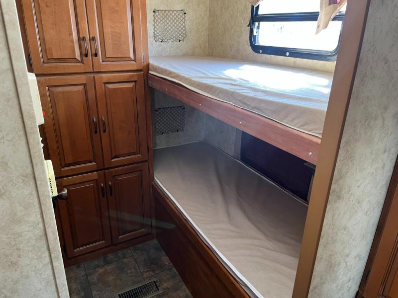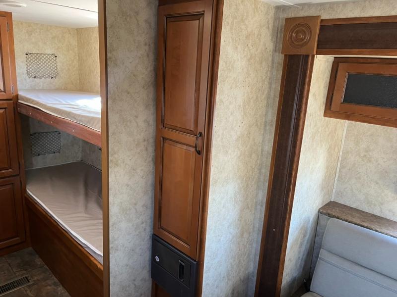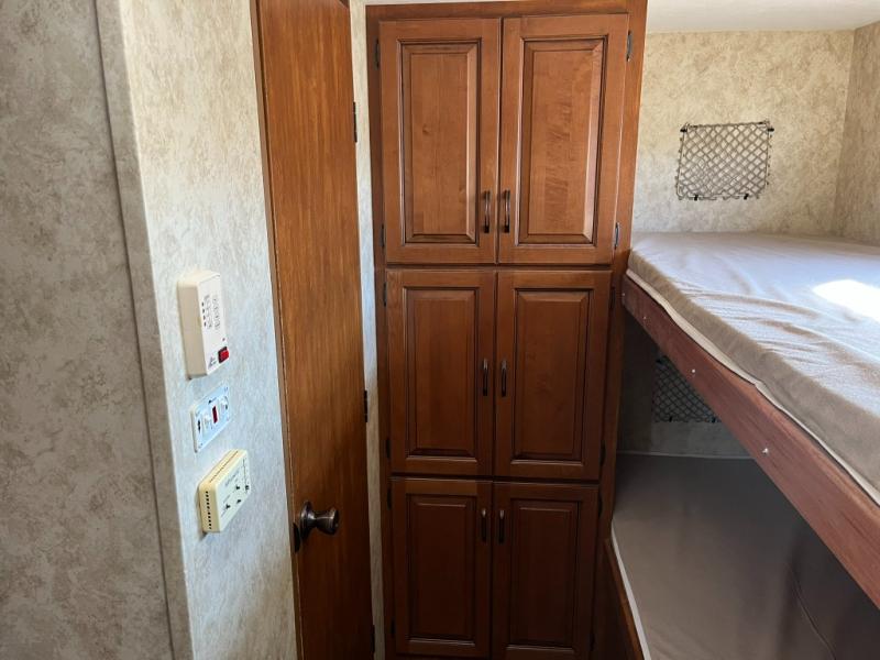 Keystone Bullet Bunkhouse Travel Trailer w/Rear Corner Bunk Beds w/Outside Storage, Wardrobe, Rear Corner Bath w/Toilet, Vanity w/Sink, Tub/Shower, Pantry, Refrigerator, 3 Burner Range, Kitchen Sink, Sofa Slideout w/Removable Dinette Table, Swivel LCD TV, Front Queen Bed w/Wardrobes Both Sides of Bed, Front Pass-Thru Storage and Much More!