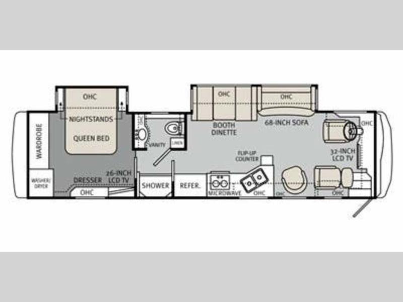 UNDER 40FT / 340HP!Double Slide Cayman Class A Motorhome, Rear Queen Bed Slide w/Nightstands, Overhead Cab., Ward., Washer/Dryer, Dresser, 26" LCD TV, Overhead Cab., Shower, Private Toilet Area w/Lav., Vanity, Refrig., 2 Burner Range, Micro., Dbl. Kitchen Range, Overhead Cab., Flip-Up Counter, Booth Dinette & Sofa Slide Out, Overhead Cab., Lounge Chair, Overcab 32" LCD TV and Much More.