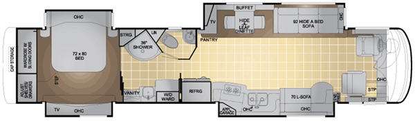 Quad Slide King Aire Motor Home, Rear King Bed w/Nightstands Slideout, Wardrobe w/Sliding Doors, Adjustable Shelves w/Drawers, Cap Storage, TV Slideout, Storage, Shower, Linen Closet, Private Toilet Area w/Lav., Pantry, TV/Hide-A-Leaf Dinette/Buffet/Hide-A-Bed Sofa Slideout, L-Sofa/Double Kitchen Sink/2-Burner Range/Appliance Garage Slideout, Refrigerator, Washer/Dryer/Wardrobe, Lav., Vanity & Much More.