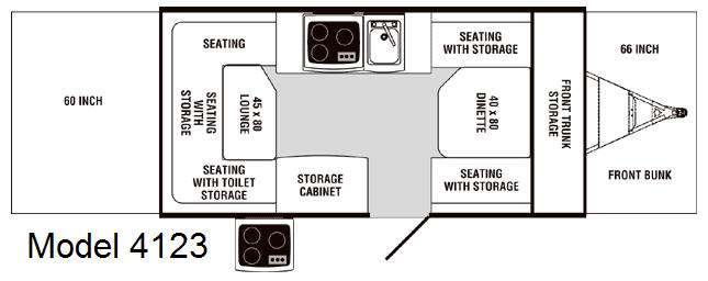 Y-Series Pop-Up Camper w/Front King & Rear Queen Tent End Beds, U-Shaped Lounge Seating w/Storage Below & Table, Front Booth Dinette w/Storage Below Seating, 3 Burner Stove Inside & Out, Sink, Storage Cabinet, & More. Available Options May Include: Furnace.
