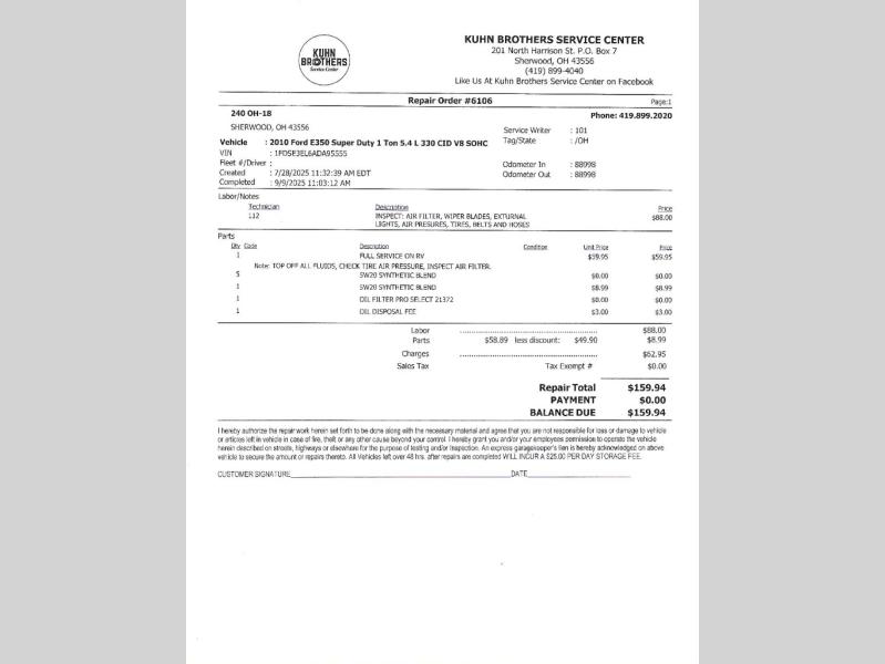 | Chassis | Ford E350 |