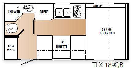 Trail-Lite Crossover Travel Trailer w/Rear Corner Bath Including Angle Shower, Lav. & Toilet, Low Wardrobe, Refrigerator, Double Kitchen Sink, 2 Burner Cook Top, Booth Dinette, Overhead Cabinets, Front Queen Bed w/Shelf and More.