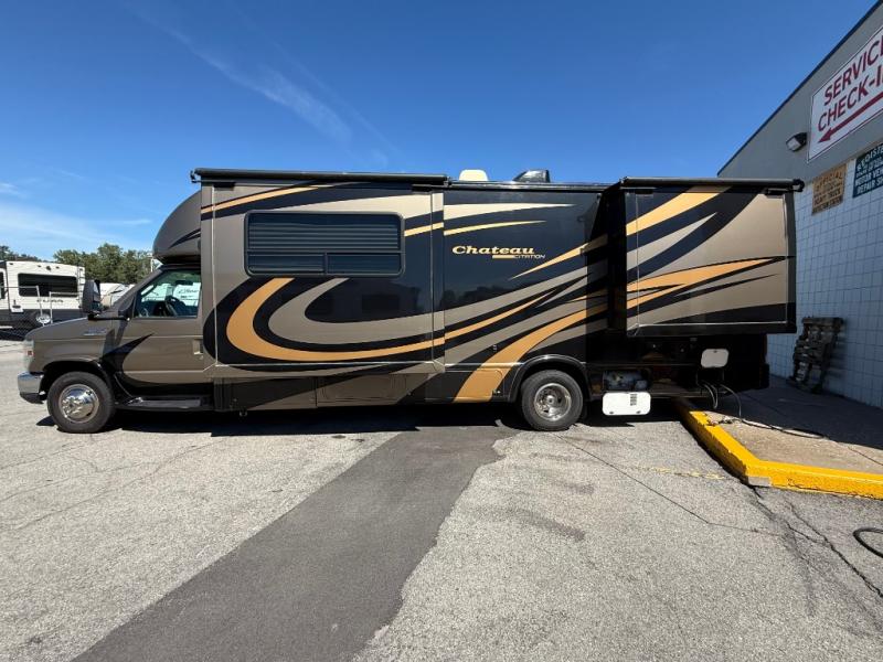 Thor Motor Coach Chateau Citation Class B+ Coach w/Double Slideouts, Rear Queen Bed Slide w/Nightstand, Wardrobe, Pantry, Bath w/Shower, Vanity w/Sink & Overhead Cabinet & Toilet, Refrigerator, 3 Burner Range, Kitchen Sink, Lounge Chair w/Ottoman, U-Shaped Dinette Slideout w/Overhead Cabinet Storage, 32" LCD TV Above Cab Area and More! Available Options May Include: Chevy Chassis, 19" LCD TV in Bedroom. Shown with Ford Specifications.