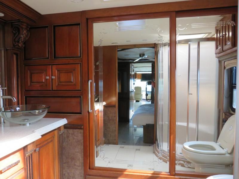Quad Slide Allegro Bus Diesel Coach by Tiffin Motorhomes w/Rear Bath Including Closet, Shower, Toilet & Sink, Slideout Queen Bed w/Nightstand, Slideout Drawers w/Hamper & 32" LCD TV, 1/2 Bath, 37" LCD TV/Pantry, Slideout Sofa Bed/Booth Dinette w/Overhead Cabinets & Res. Refrigerator, 37" LCD TV Above Cab Area, Range w/Microwave/Dbl. Sink & 74" Sofa Slide, & Much More! Shown w/Freightliner Specs., Avail. Options May Include: Tile Floor in Bedroom, King Bed, Wash/Dryer, Powerglide Chassis.