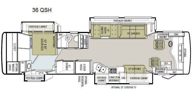 Quad Slide Phaeton Class A with Queen Bed Slide w/Nightstands, 32" LCD TV w/Overhead Cabinet Slide, Closet, Private Toilet Area w/Lav., 41" Shower, 4-Door Refrigerator, Ent. Center w/32" LCD TV, Booth Dinette & Sofa Bed Slide, Double Kitchen Sink/Range w/Convection Microwave & 62" Sofa Bed Slide, and Much More. Available Options May Include: Washer/Dryer, U-Shaped Dinette, Free Standing Dinette, Residential Refrigerator, 32" Exterior TV, 37" LCD TV Above Cab Area.
