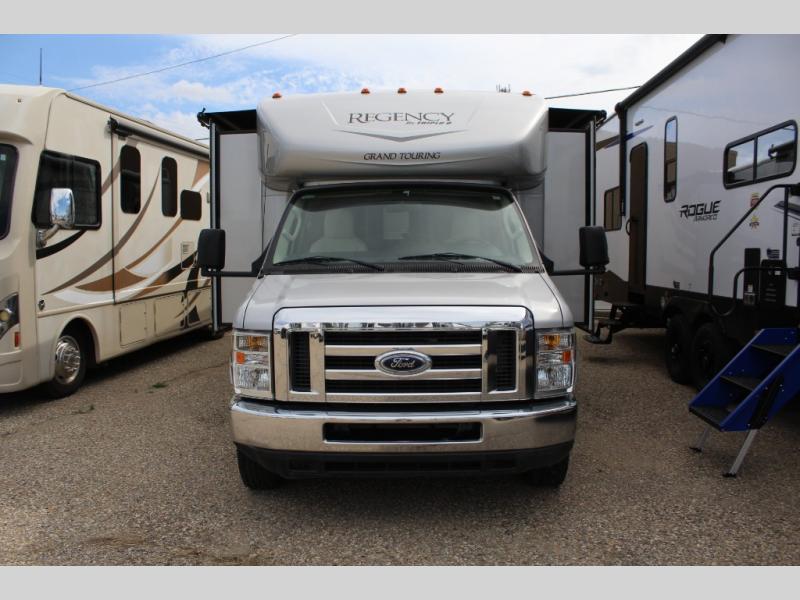 Triple Slide Regency GT Motor Home Class B+, Rear Queen Bed Slide, Wardrobe, 22" LED TV, Private Toilet Area, Lav., Shower, Refrigerator, Booth Dinette Slide, 26" LED TV Above Cab, Easy Bed Sofa Slide, Kitchen Sink, 3-Burner Range, Overhead Cabinets Throughout & Much More.