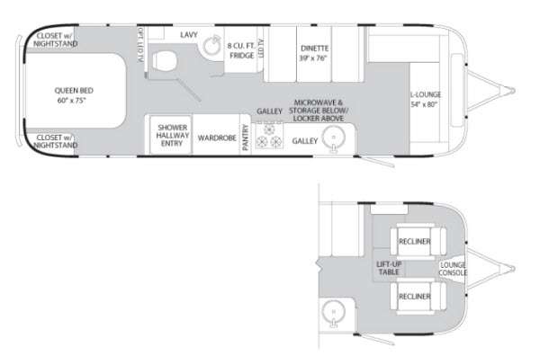 International Serenity Travel Trailer, Rear Queen Bed w/Dbl. Closets w/Nightstands, Private Toilet Area w/Lav., 8 Cu. Ft. Refrigerator, LED TV, Dinette, L-Lounge, Single Galley Sink w/Microwave & Storage Below, 3-Burner Range, Pantry, Wardrobe, Shower & Much More. Available Options May Include: 2-Recliners w/Lift Up Table & Lounge Console IPO L-Lounge.