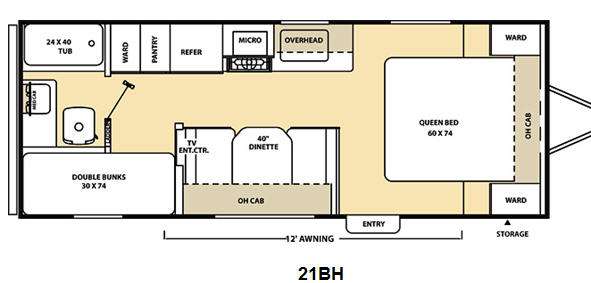 Coachmen Catalina Bunkhouse Travel Trailer w/Rear Corner Bath Including Tub, Sink, Closet/Linen & Toilet, Rear Corner Bunk Beds, Wardrobe, Pantry, Refrigerator, 2 Burner Range w/Microwave, Dbl. Kitchen Sink, Booth Dinette w/Overhead Cabinets, TV Ent. Center, Front Queen Bed w/Wardrobes Both Sides of Bed and Front Pass-Thru Storage and More!