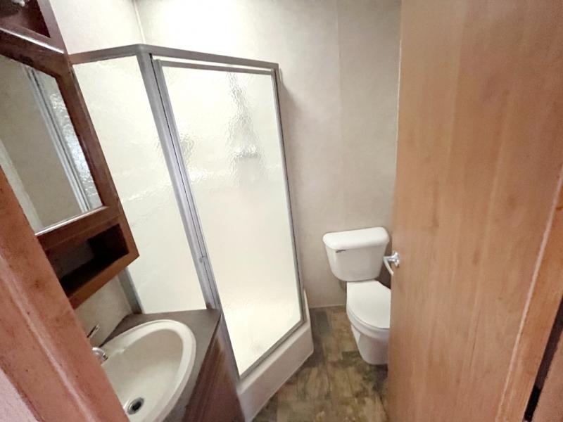 Double Slide Hampton Dest. Trailer, Rear Slide Out Queen Bed, Overhead Cab., Ward., Chest of Drawers, Corner Shower, Toilet, Linen, Lav., Med. Cab., Ent. Ctr., Sofa/Free Standing Dinette w/Chairs/Lounge Chair Slide, Lounge Chair, Res. Refrig., 3 Burner Range, Microwave, Overhead Cab., Front Double Kitchen Sink & More.