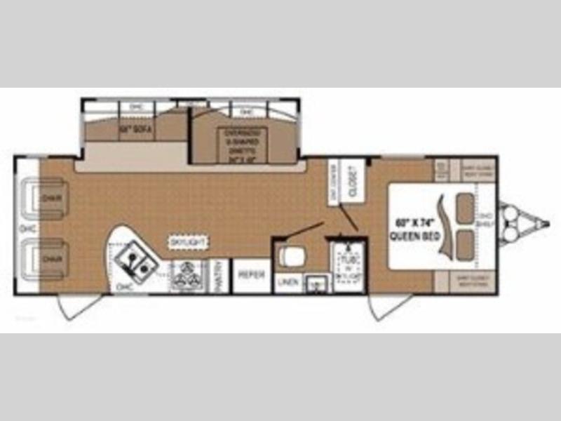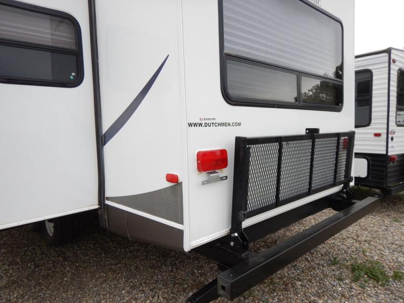 Dutchmen Classic Travel Trailer w/Rear Living Area Including 2 Chairs and Overhead Storage Cabinets, Slideout Sofa and 84" x 48" Oversized U-Dinette, Ent. Center, Dbl. Kitchen Sink, 3 Burner Range, Refrigerator, Pantry, Skylight, Bath w/Toilet, Tub/Shower w/Skylight, Sink & Linen Cabinet, Front Queen Bed w/Shirt Closets Above Nightstands Both Sides, Front Pass-Thru Storage Plus, Private Bedroom Entry and More!