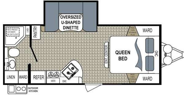 Dutchmen Kodiak Single Slide Travel Trailer w/Rear Full Bath Including: Neo-Angle Shower, Linen Cabinets, Toilet & Sink w/Overhead, Wardrobe, Pantry, Refrigerator, Stove w/Microwave Above, Dbl. Kitchen Sink w/Overhead Cabinets, Oversized U-Dinette Slide, Ent. Center, Main Room Skylight, Front Queen Bed w/Wardrobes Both Sides of Bed & Overhead Cabinet, Pass-Thru Storage Plus, Rear Outdoor Kitchen & Much More!