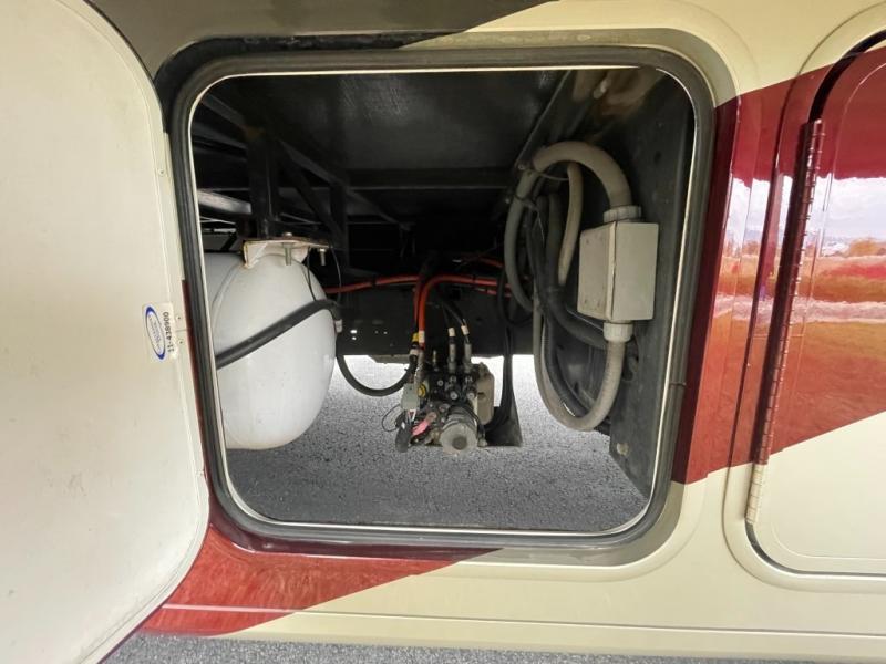 Double Slide Georgetown Motor Home Class A, Rear Queen Bed Slideout, Double Wardrobe, Booth Dinette/Sofa Slideout, Shower, Toilet, Lav., Med. Cab., Double Kitchen Sink, 3-Burner Range, Microwave, Refrigerator, TV, Overhead Cabinets Throughout & Much More. Available Options May Include: TV in Bedroom.