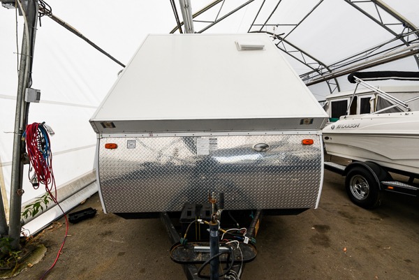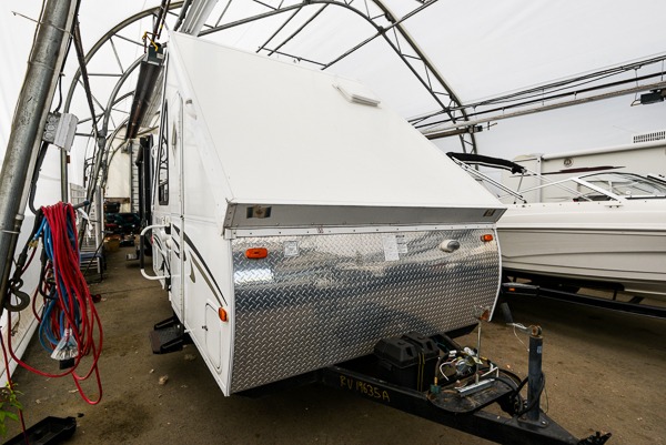 Rockwood Hard Side Folding Pop-Up Camper, Rear U-Dinette, Cool Cat, Single Galley Sink, Refrigerator, 3-Burner Range, Dinette, Furnace, W/H, Sliding Storage, Micro. Cab., RVQUE Gas Grill, Awning & Much More.