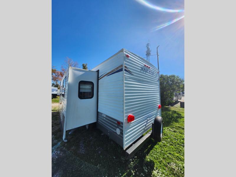 Single Slide Salem Travel Trailer by Forest River, Rear Bath w/Toilet, Tub/Shower, Lav. w/Med. Cab., Triple Rear Bunk Beds, Ward. w/Drawers, Refrig., 3 Burner Range w/Micro., Dbl. Kitchen Sink, Slideout U-Shape Dinette & Sofa w/Overhead Cab., Swivel For Flat Screen TV w/Out TV, Front Queen Bed w/Ward. & Drawers, Front Pass Thru Storage, Rear Storage, 16' Awning and More.