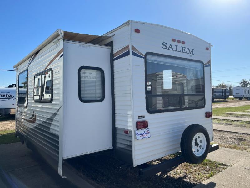 Single Slide Salem Travel Trailer, 2-Lounge Chairs, End Table, Sofa/Dinette Slide, Double Kitchen Sink, 3-Burner Range, Microwave, Refrigerator, Pantry, Wardrobe, Bath w/Toilet, Ward., Neo-Angle Shower, Lav., Med. Cab., Queen Bed, Double Wardrobes w/Drawers, Overhead Cabinets Throughout, Pass Thru Storage & Much More.