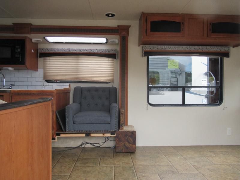 Single Slide V-Cross Classic Travel Trailer, Rear Queen Bed, Dbl. Wardrobes, LCD TV Mount, Pantry, Refrigerator, 3-Burner Range/Microwave/Dbl. Kitchen Sink/Sofa Slide, 2-Lounge Chairs, Desk, Entertainment Center, Dinette, Tub/Shower, Lav., Toilet, Overhead Cabinets Throughout, Outside Storage & Much More. Available Options May Include: Skylight Above Sofa.