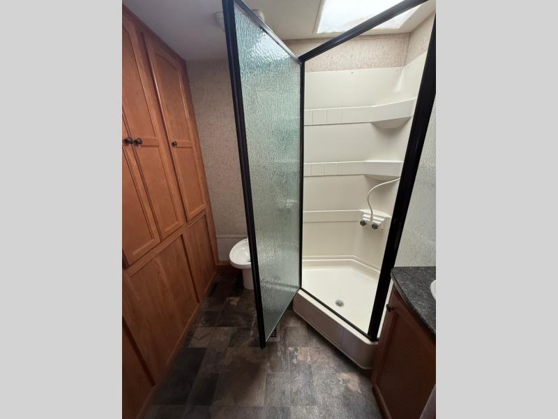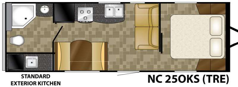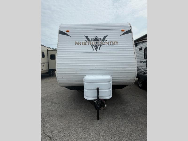 Non-Slide North Country Trail Runner Edition SLT Travel Trailer w/Rear Bath Including Angle Shower, Toilet & Sink, Refrigerator, 3 Burner Range, Dbl. Kitchen Sink, Sofa, Overhead Cabinets Throughout, Booth Dinette, Front Queen Bed w/Storage Both Sides of Bed, Standard Exterior Kitchen and Much More!