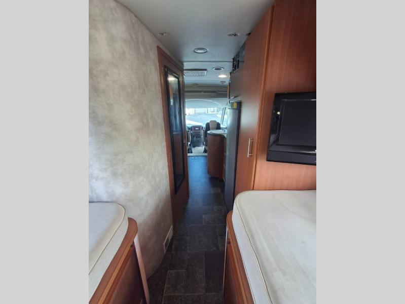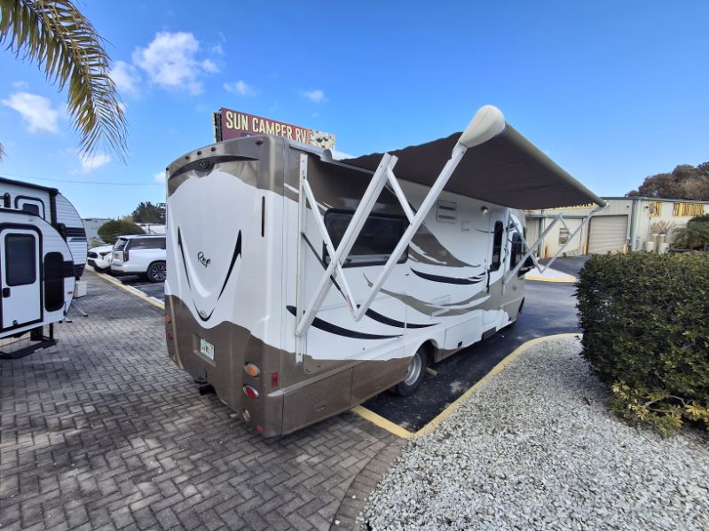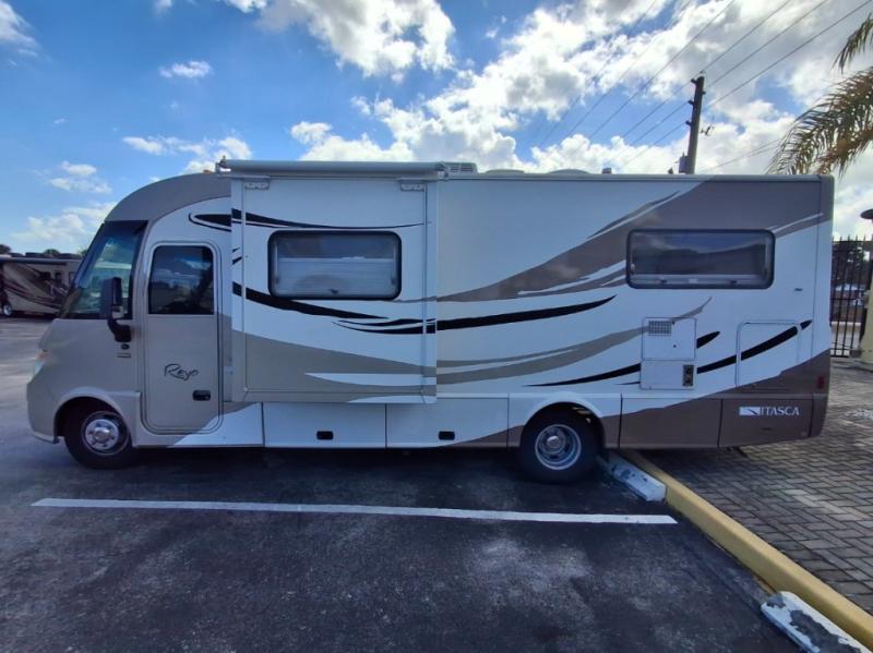 Gorgeous Class A (Diesel) Under 30 ft. Call Fort Pierce for details. 772-468-1166Single Slide Itasca Reyo Class A Diesel Coach w/Rear Twin Beds w/Nightstand Between (Cross Coach Sleeping 74" x 87"), Wardrobe, TV, Refrigerator, 2 Burner Cooktop, Round Sink, Bath w/Shower, Toilet & Vanity w/Sink, Sofa Slideout w/Movable Pedestal Table Overhead Cabinets and Much More! Available Options May Include: Studio/Loft Bed 49" x 73".