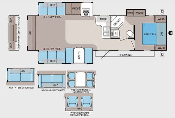 Triple Slide Jayco Jay Flight G2 TT, Rear Ent. Ctr., J-Steel Sofa w/Overhead Cab./ Booth Dinette Slide, J-Steel/Pantry/Refrig./Range Slide, Dbl. Kitchen Sink, Microwave, Bath w/Corner Shower, Lav. w/Med. Cab., Toilet, Ward./Linen Slide, Front Queen Bed w/Ward., Overhead Cab. Throughout, 13' Awning & More. Available Options May Include: Ledgestone Fireplace, Hide-A-Bed, Free Standing Table & Chairs, Two Swivel Rockers IPO Sofa.