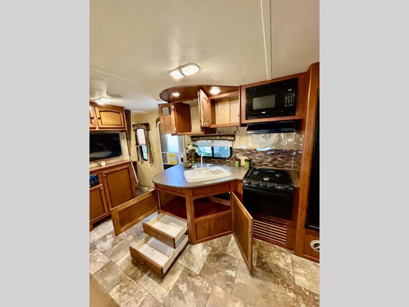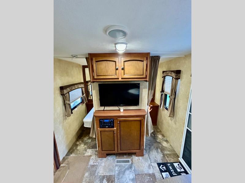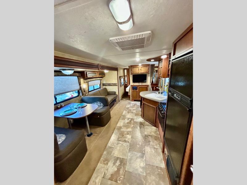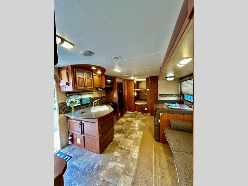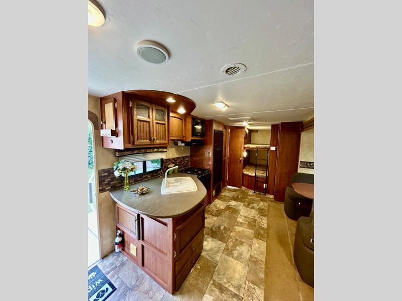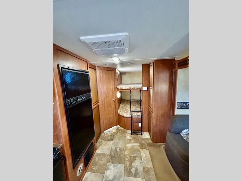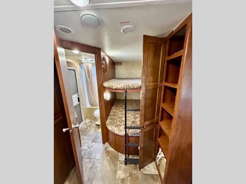 Single Slide White Hawk Travel Trailer, Rear Double Bed Bunk Beds, Tub/Shower, Toilet, Lav., Med Cab., Pantry/Ward., Refrigerator, Microwave, 3-Burner Range, Dbl. Kitchen Sink, Entertainment Center, Queen Bed, Dbl. Wardrobes, Sofa/Dinette Slide, Pantry, Overhead Cabinets Throughout & Much More. Available Options May Include: Free-Standing Table & Chairs, Hide-a-Bed.
