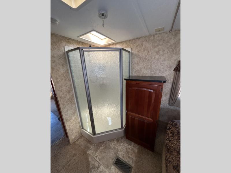 Single Slide Cougar Fifth Wheel by Keystone, Rear Living Space w/2 Chairs & End Table, Sofa & Booth Dinette Slideout w/Overhead Storage Above Sofa, Double Kitchen Sink, 3 Burner Range, Refrigerator, Pantry, Ent. LCD TV, Neo-Angle Shower, Wardrobe/Linen Cabinet, Private Toilet Area, Front Queen Bed w/Wardrobes, Overhead Storage, Laundry Chute & More.