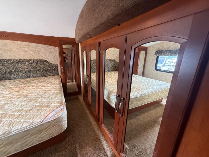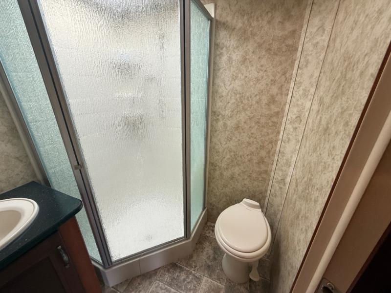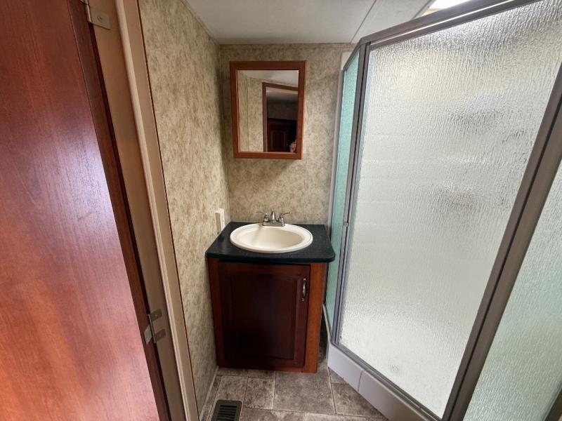 Single Slide X-lite Fifth Wheel w/Rear Kitchen Including Pantry, 3 Burner Range, Dbl. Kitchen Sink, Refrigerator, Booth Dinette & Sofa Slide, 2 Lounge Chairs, Ent. Center, Side Aisle Bath w/Neo-Angle Shower, Sink, Toilet, Hall Linen Cabinet, Window Slide in Bedroom, Front Queen Bed w/Wardrobes Both Sides of Bed and Much More!