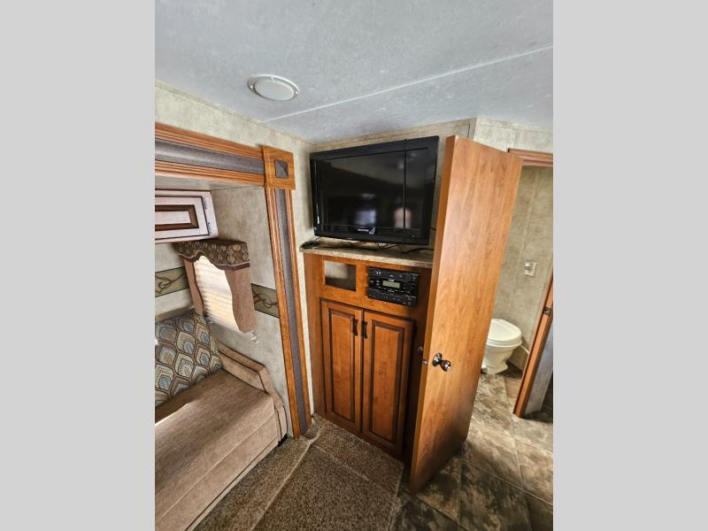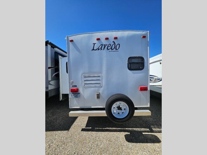 Laredo Super Lite Travel Trailer (Dealer Stock) w/Rear Kitchen Including Pantry, Refrig., 3 Burner Range, Dbl. Kitchen Sink, Overhead Cabinets, 2 Chairs w/End Table Between and Overhead Cabinet, Family Sized Dinette & Air Mattress Sofa Sleeper Slide, LCD TV, Angle Shower, Toilet & Sink, Front Queen Bed w/Wardrobes Both Sides, Pass-Thru Storage and More!