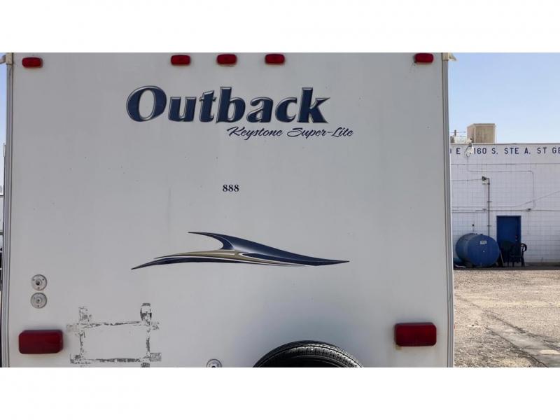 Keystone Outback Travel Trailer w/Rear Full Bath w/Private Entry, Angle Shower, Linen Cabinet & Sink, Private Toilet Area w/Private Entry, Ent. Center, Pantry/Dinette Slideout w/Overhead, Refrig., 3 Burner Range, Dbl. Kitchen Sink, End Table, Air Sofa Sleeper, Front Queen Bed w/Wardrobes Both Side, Front Pass-Thru Storage, Outside Camp Kitchen and Much More!