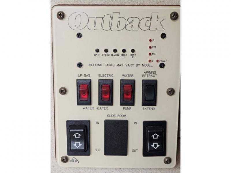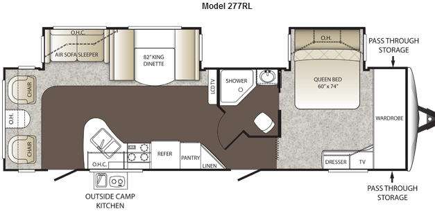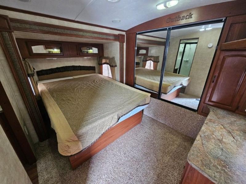 Keystone Outback Travel Trailer w/Rear Living Area Including 2 Lounge Chairs w/End Table Between & Overhead Cabinet, Air Sofa Sleeper & King Dinette Slide, LCD TV, Dbl. Kitchen Sink, 3 Burner Range, Refrigerator, Pantry, Linen Cabinet, Outside Camp Kitchen, Side Aisle Bath w/Angle Shower, Toilet & Sink, Dbl. Bath Entry, Front Queen Bed Slide w/Overhead Cabinet, Pass-Thru Storage, Full Front Wall Wardrobe, Dresser, TV and Much More!