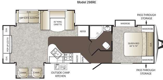 Keystone Outback Travel Trailer w/Rear Entertainment Including: Rear Pop-Up LCD TV w/Overhead Cabinets Both Sides, 2 Lounge Chairs Slide, Air Sofa Sleeper & 82" King Dinette Slide, Refrig., Dbl. Kitchen Sink, 3 Burner Range, Pantry, Linen Cabinet, Side Aisle Bath w/Angle Shower, Sink & Toilet, Front Queen Bed w/Wardrobes Both Sides, Wardrobe Slide, Pass-Through Storage, Outside Camp Kitchen and Much More!