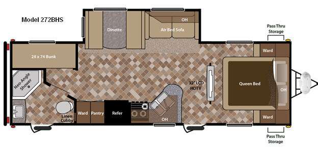 Sprinter Travel Trailer w/Rear Corner Bunk Beds, Rear Corner Bath w/Private Entry, Neo-Angled Shower, Toilet & Sink, Linen Cubby, Wardrobe, Pantry, Refrigerator, 3 Burner Range, Dbl. Kitchen Sink, Booth Dinette & Air Bed Sofa Slideout, Overhead Storage Above Sofa, 32" LCD TV, Front Queen Bed w/Wardrobes Both Sides, Front Pass-Thru Storage and Much More!