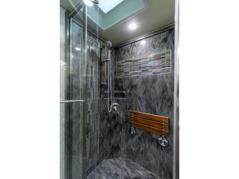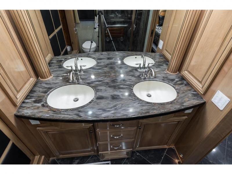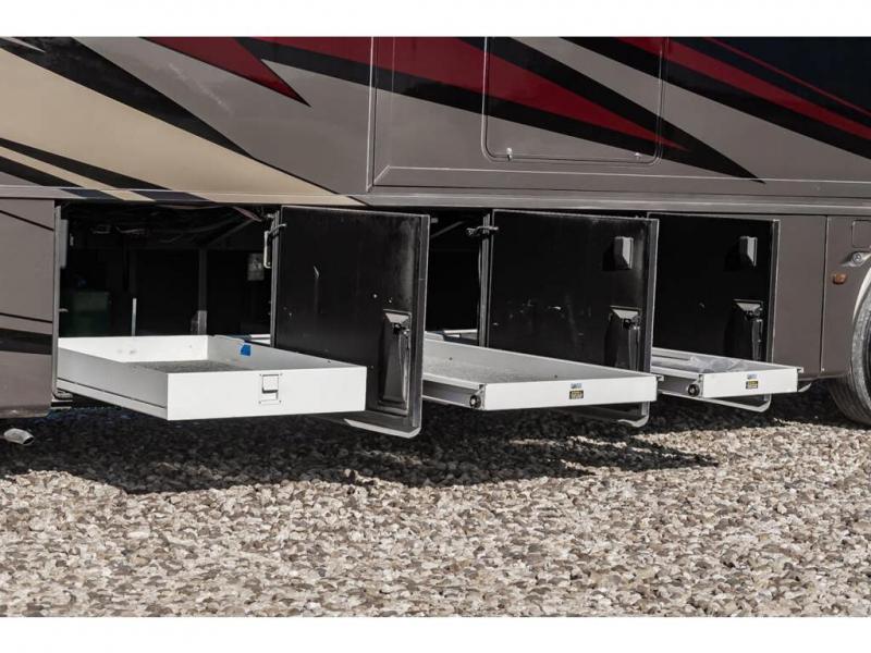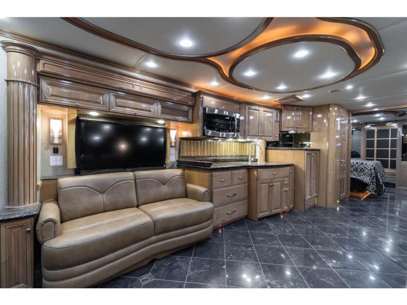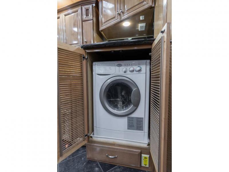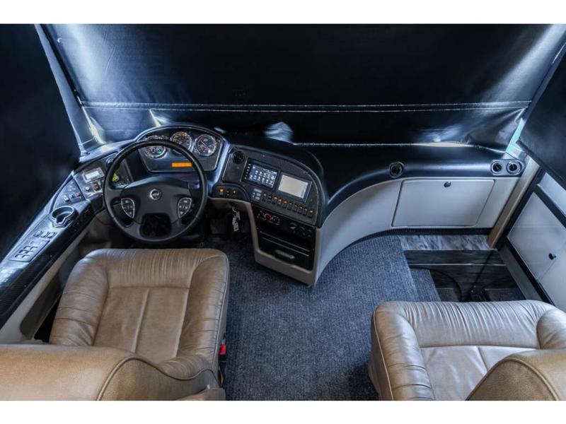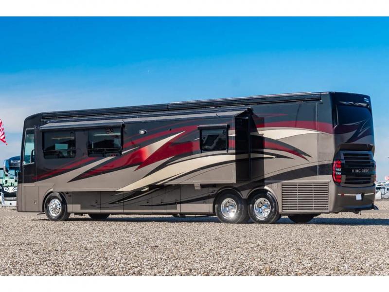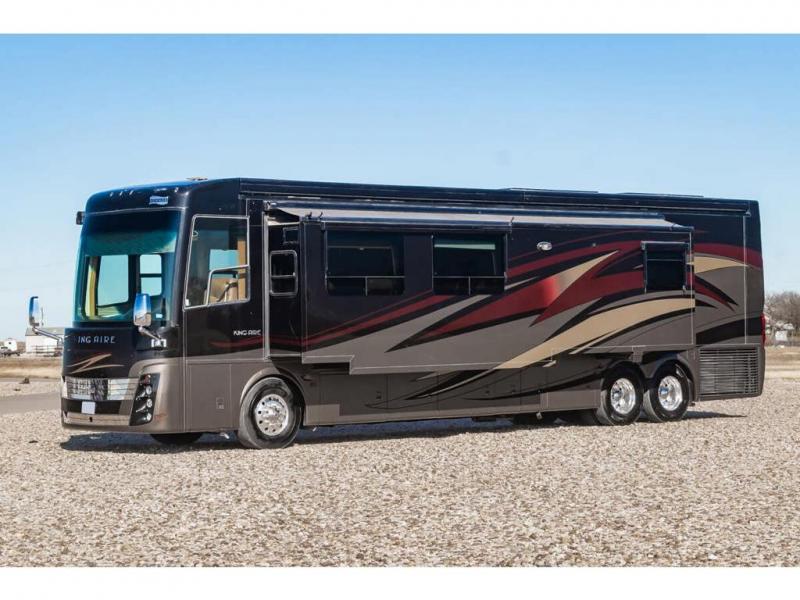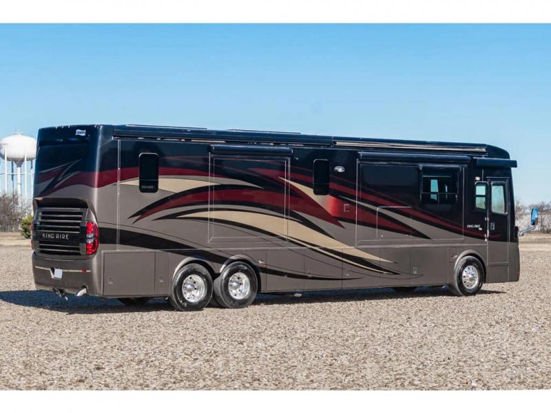 Triple Slide King Aire Motor Home, Rear Bathroom w/Double Lav., Adjustable Shelves, Wardrobe w/Sliding Doors, Toilet, Shower, King Bed Slide, TV Slide/Pantry/Refrigerator/TV/Ent. Center/Hide-A-Leaf Dinette/Buffet/Hide-A-Bed Sofa Slide, Jack Knife Sofa/2-Burner Range/Double Kitchen Sink Slide, Washer/Dryer, Half Bath, Overhead Cabinets Throughout & Much More.