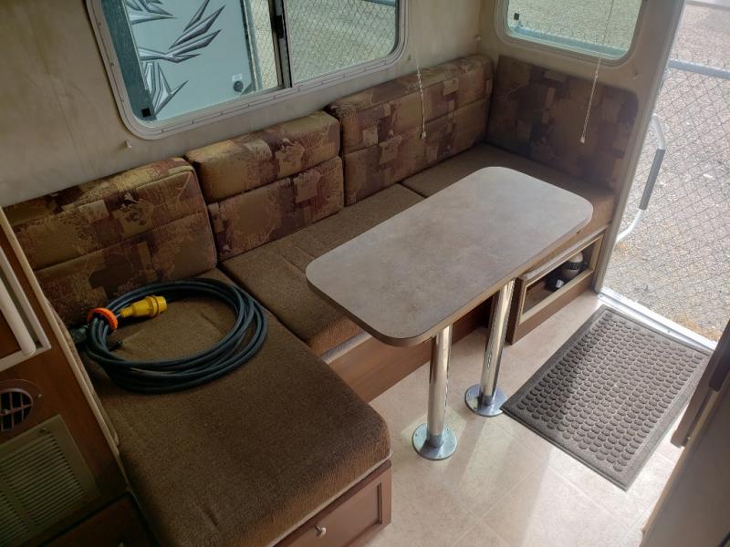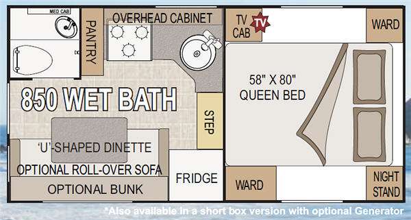 Wolf Creek Lightweight Truck Camper w/Rear Entry, U-Shaped Dinette, Refrigerator, Rear Corner Wet Bath w/Toilet, Sink & Shower, Pantry, 3 Burner Cooktop, Kitchen Sink, Overhead Cabinet, Step Up to Queen Bed w/Wardrobes, Nightstand and TV Cabinet and More! Available Options May Include: Oven, Microwave, 5 Cu. Ft. Refrig. (Also Avail. in Short Box Version w/Optional Generator)
