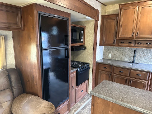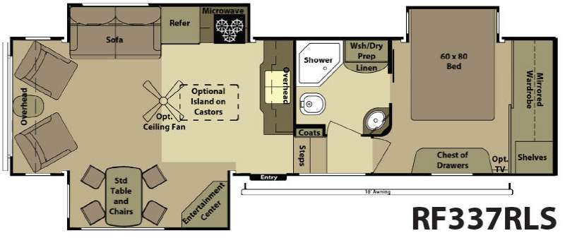 Roamer Fifth Wheel by Open Range RV w/Rear Living Area Including 2 Lounge Chairs, End Table, Overhead Storage, Sofa/Refrigerator & 3 Burner Range Slideout w/Microwave Above, Dinette Table & Chairs & Ent. Center Slide, Dbl. Kitchen Sink, Overhead Storage, Step Up to Side Aisle Bath & Front King Bed Slide, Mirrored Wardrobe w/Sliding Doors, Shelves, Chest of Drawers, Bath Including: Angle Shower, Wash/Dryer Prep/Linen Cabinet, Toilet & Sink, Hall Coat Closet & Much More!