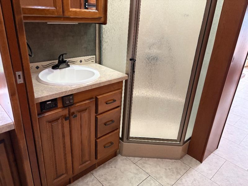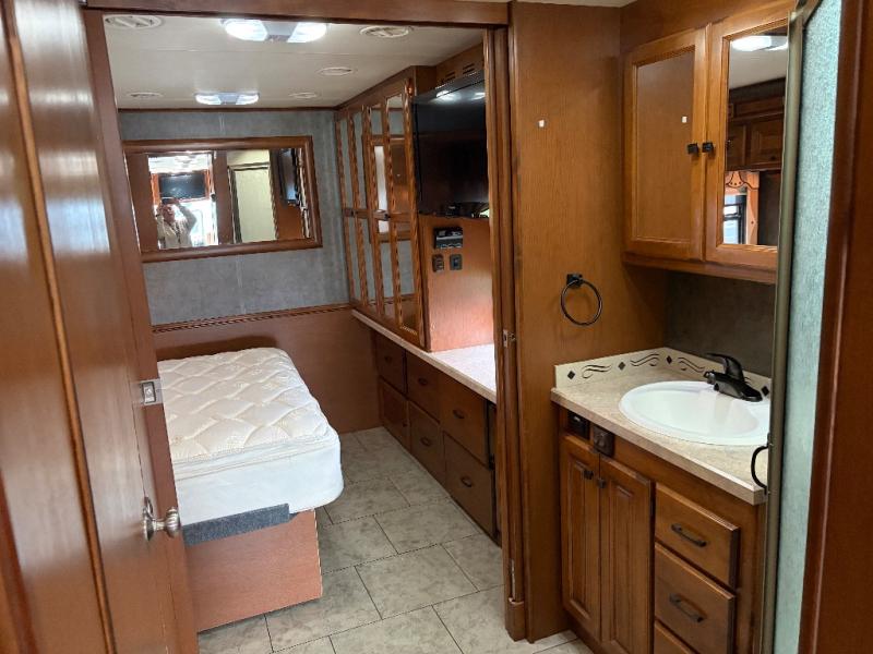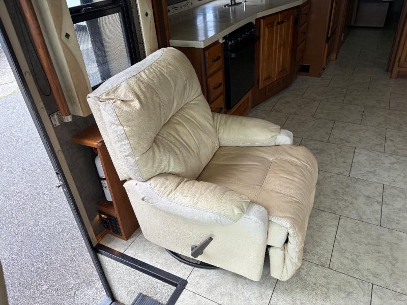 Triple Slide Allegro Class A by Tiffin w/Rear Queen Bed Slide w/Nightstands, Wardrobe w/Drawers Below, Private Toilet Area w/Lav., Corner Shower w/Lav., Refrigerator, Booth Dinette & Sofa Bed Slideout, Double Kitchen Sink & 3 Burner Range Slide w/Overhead Cabinets, Lounge Chair, 37" TV and Much More! Available Options May Include: 32" TV Above Cab Area, Driver's Door, 32" TV in Bedroom, Tile Floor in Bedroom, Free Standing Cabinet/Dinette.