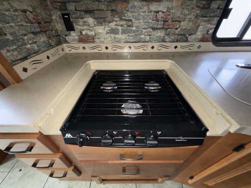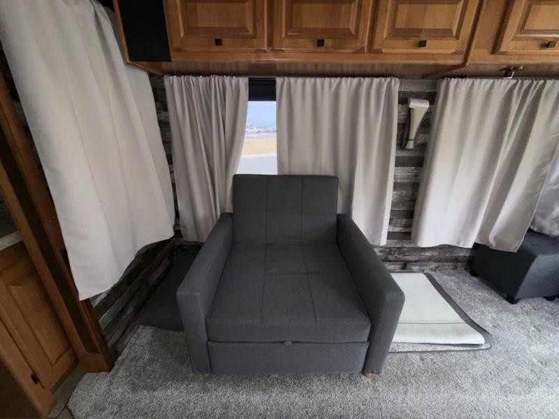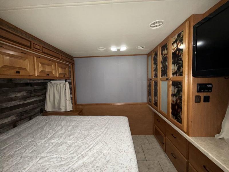 Triple Slide Allegro Class A by Tiffin w/Rear Queen Bed Slide w/Nightstands, Wardrobe w/Drawers Below, Private Toilet Area w/Lav., Corner Shower w/Lav., Refrigerator, Booth Dinette & Sofa Bed Slideout, Double Kitchen Sink & 3 Burner Range Slide w/Overhead Cabinets, Lounge Chair, 37" TV and Much More! Available Options May Include: 32" TV Above Cab Area, Driver's Door, 32" TV in Bedroom, Tile Floor in Bedroom, Free Standing Cabinet/Dinette.